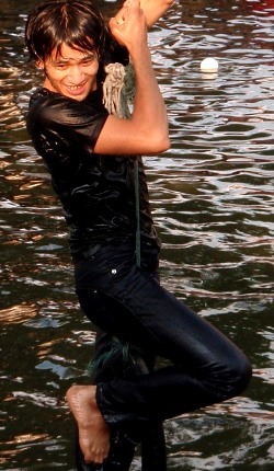 The two boxer boys didn’t put on any more clothes, but they sure looked awesome climbing out of the water, thin cotton boxers and T-shirts clinging to their backsides, dripping water off.