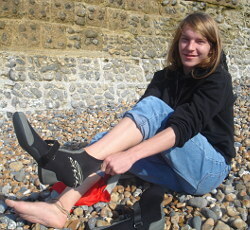 Scuba divers wear neoprene foam "booties" with their fins and this helps immensely.